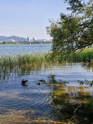 - 강변 산책로와 억새밭, 코스모스 길
