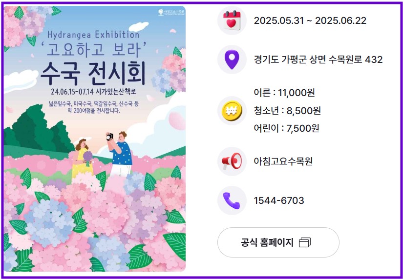 🌸 아침고요수목원 수국전시회 행사 정보