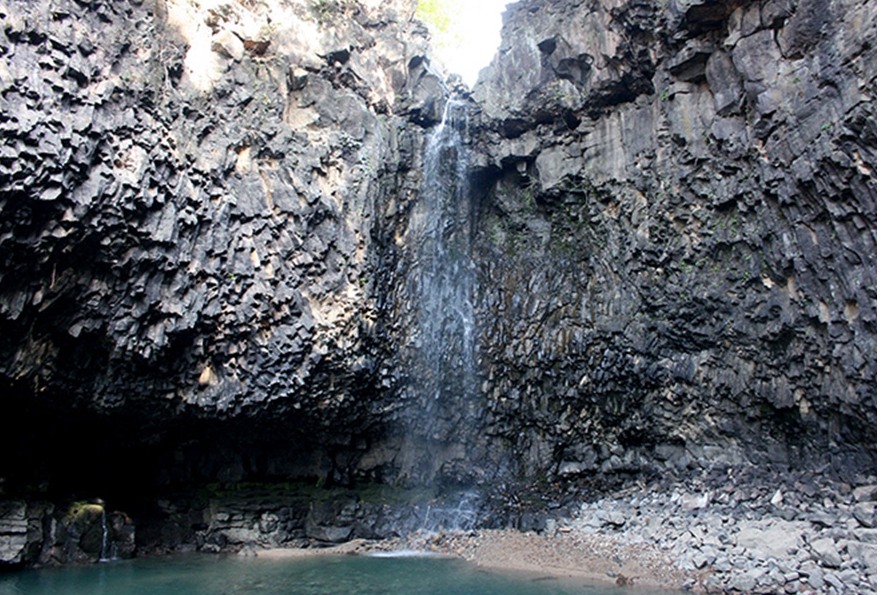 한탄강에서 가장 아름답고 멋진 경관을 자랑하고 있는 곳으로, 북쪽에 있는 지장봉에서 흘러 내려온 작은 하천이 높이 약 18m에 달하는 현무암 주상절리 절벽으로 쏟아집니다.