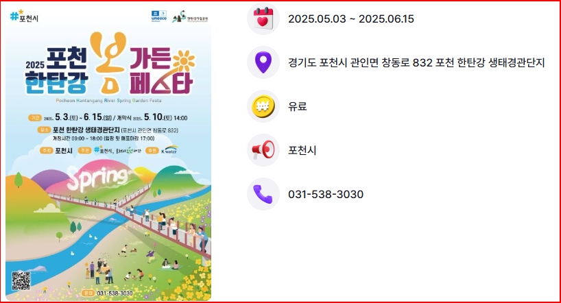 더 자세한 정보는 포천 한탄강 가든페스타 공식 홈페이지를 방문하시거나, 포천시청 관광과(031-538-3030)로 문의하시면 됩니다.