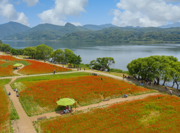 - 호수 둘레 벚꽃 산책로