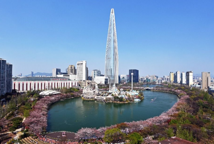 - 롯데타워 배경 벚꽃 사진