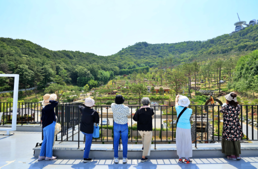 방문객들은 화개산 정상을 향해 지그재그로 조성한 테마 코스를 걸으며 커다란 무쇠 가마솥을 찾아다니는 즐거움까지 누린다고 하네요.